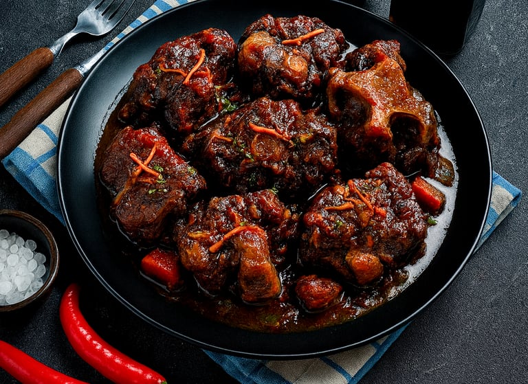 Slow-braised oxtail simmered in rich, savory gravy. Half pan serves up to 8.